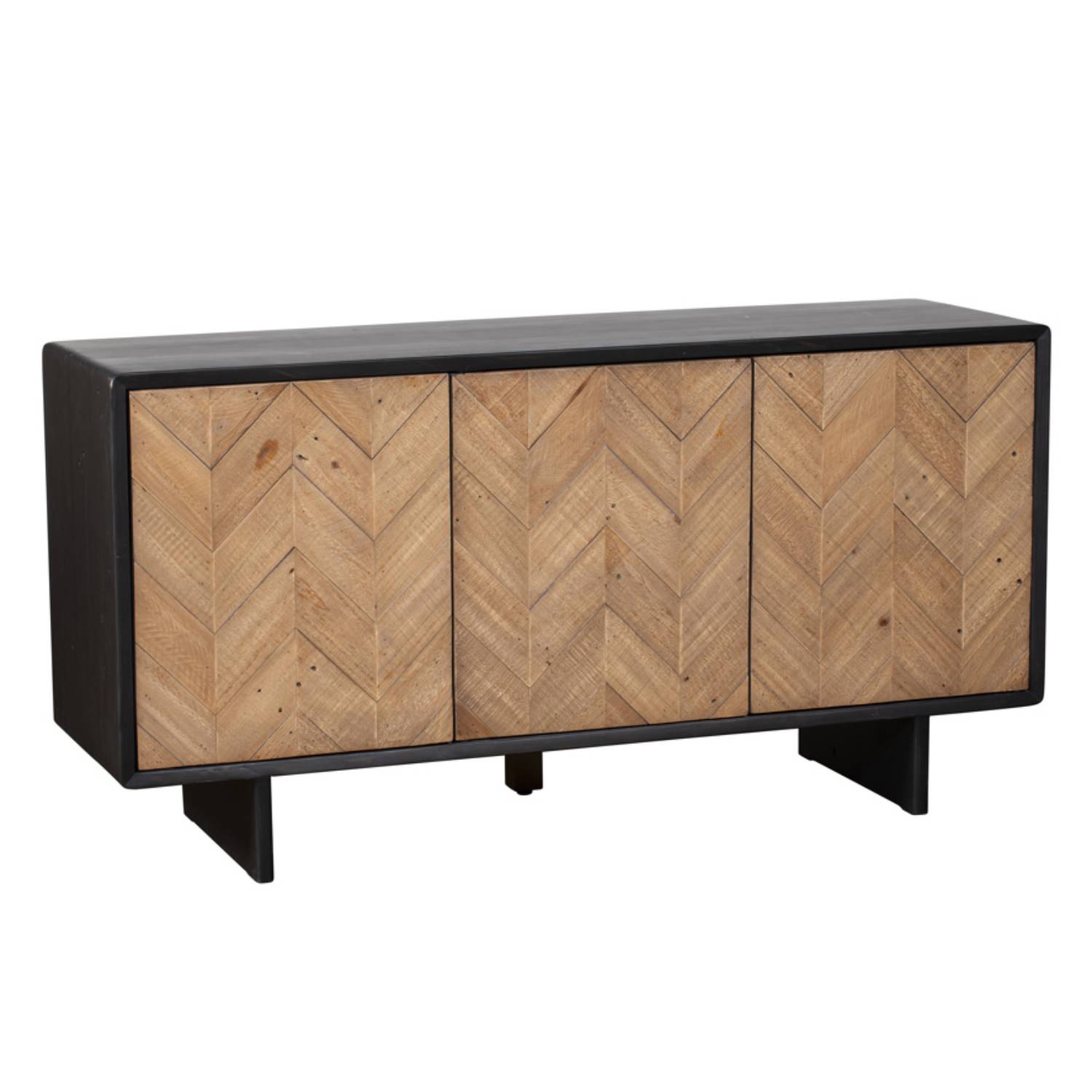 Bring natural texture and modern craftsmanship into your home with this striking sideboard, hand crafted from 100% reclaimed FSC timber. The chevron-patterned doors are made using traditional techniques, showcasing the character and variation of the reclaimed wood.