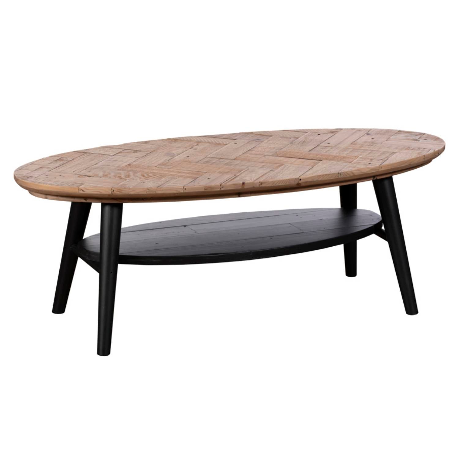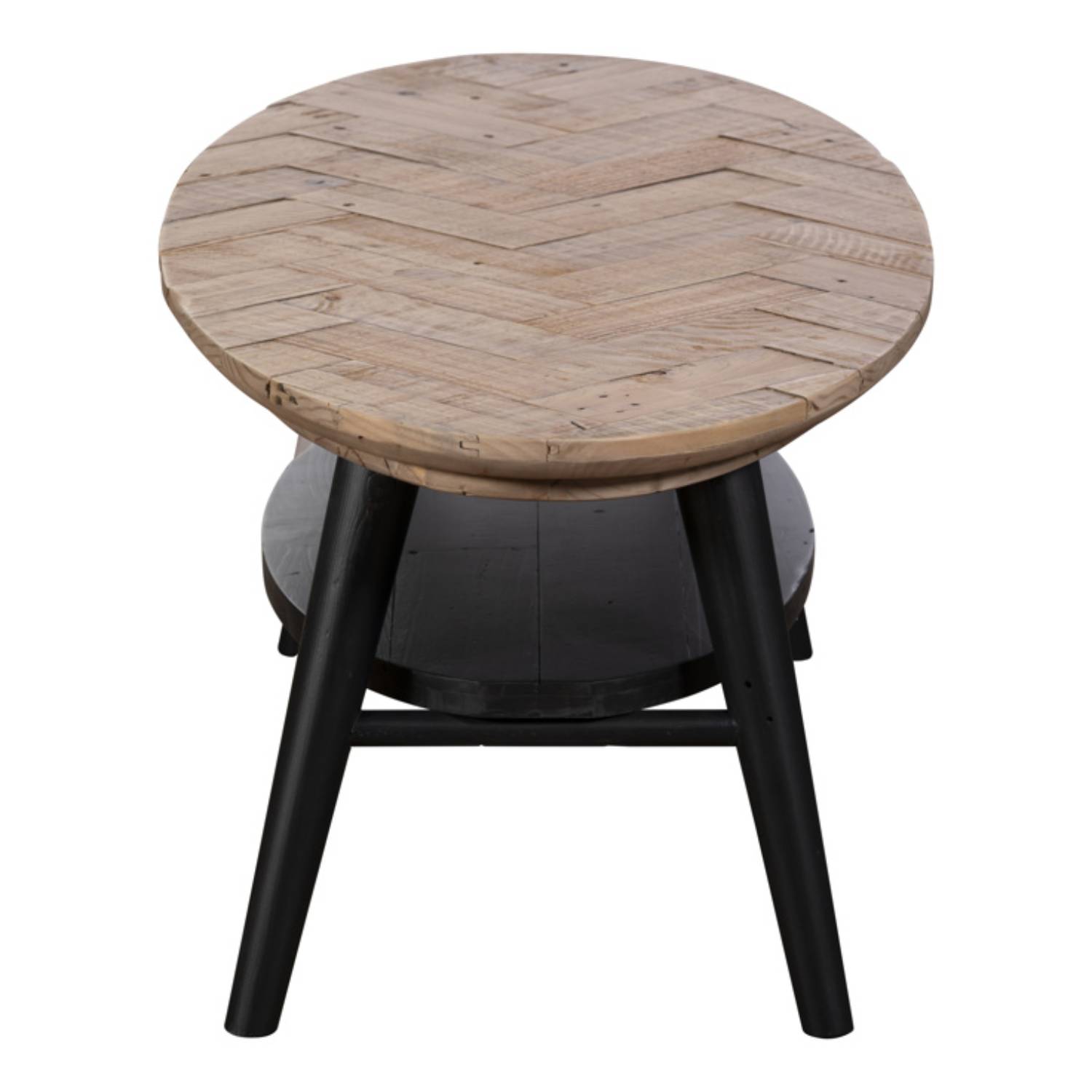 The Franklin handcrafted coffee table, made from 100% reclaimed FSC timber. The round top features a beautifully detailed chevron pattern, created using traditional woodworking techniques that highlight the natural grain and character of the timber.