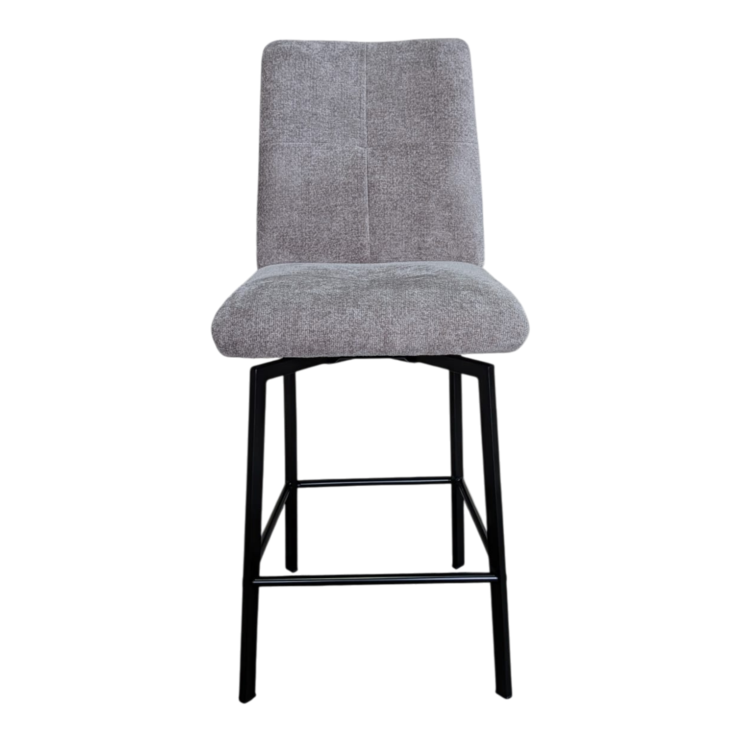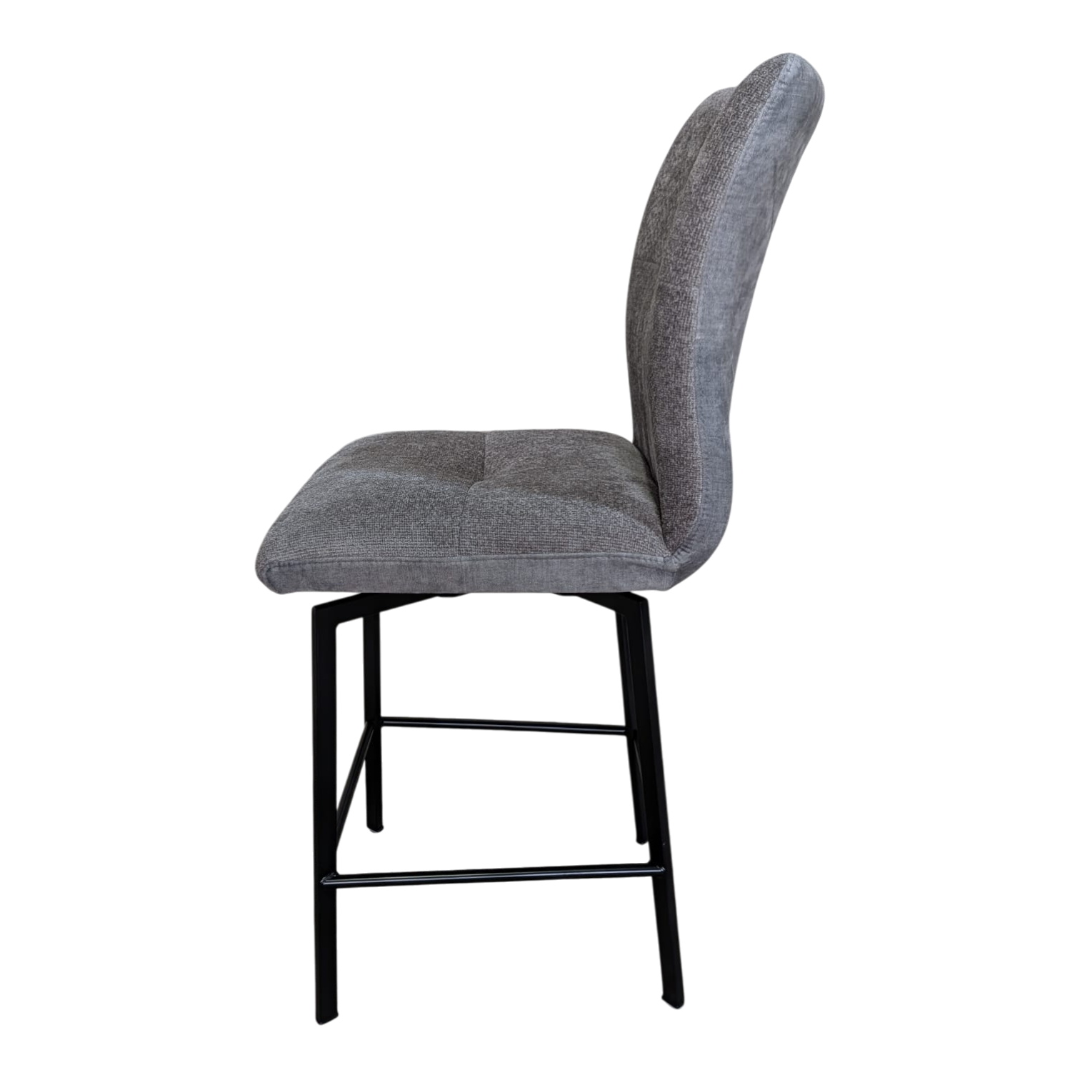 A perfect balance of comfort and style, this grey fabric barstool brings a contemporary edge to any kitchen or breakfast bar. Upholstered in a soft, hard-wearing textured fabric, it offers a supportive high back and gently curved seat for lasting comfort. The practical swivel base makes it easy to turn and move while seated, while the sturdy black metal frame adds modern contrast and stability.