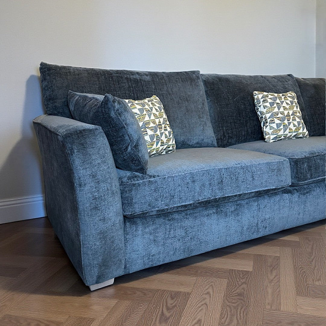 The Maverick corner sofa is consists of three elements, a Large 2 seater 1 arm section, curved corner unit and a Large 1 seater 1 arm section. its made using fully seasoned, hand-selected hardwood.