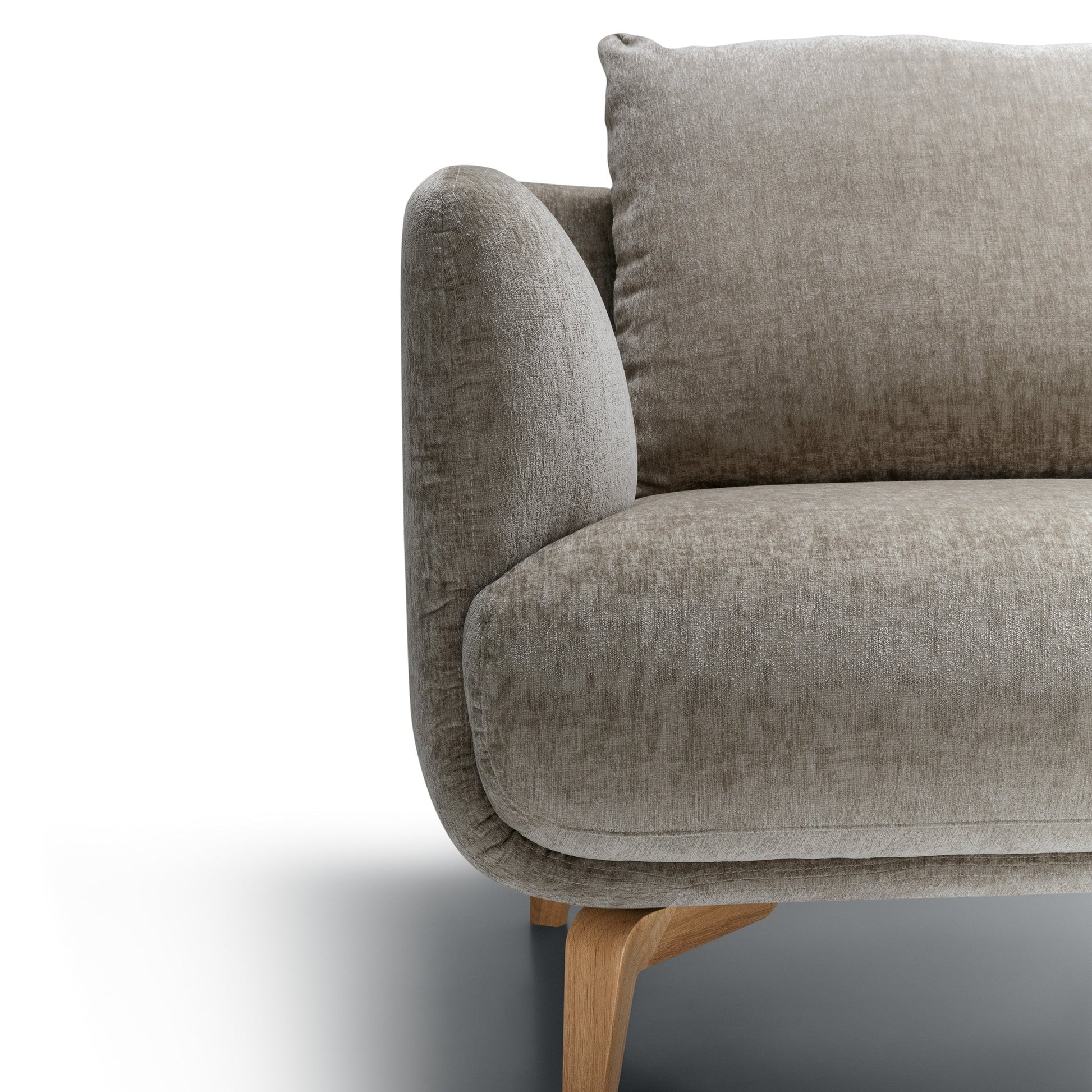 The Moa Set 3 Corner Chaise Sofa arrives in 2 sections, it features a low-profile frame with a double cushion configuration. It includes removable back cushions and fixed seat cushions. The design incorporates rounded armrests and a smooth front profile. The frame is supported by exposed wooden legs.