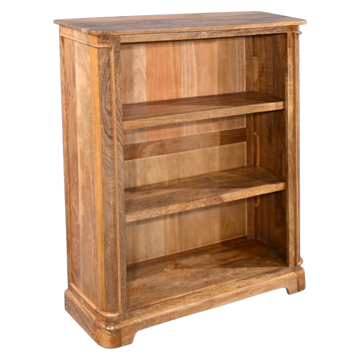 The Natalia Medium Bookcase is crafted from solid mango wood with a rich, warm finish. Featuring rounded edges and reeded detailing on the sides. Designed with three open shelving areas for plenty of storage space.