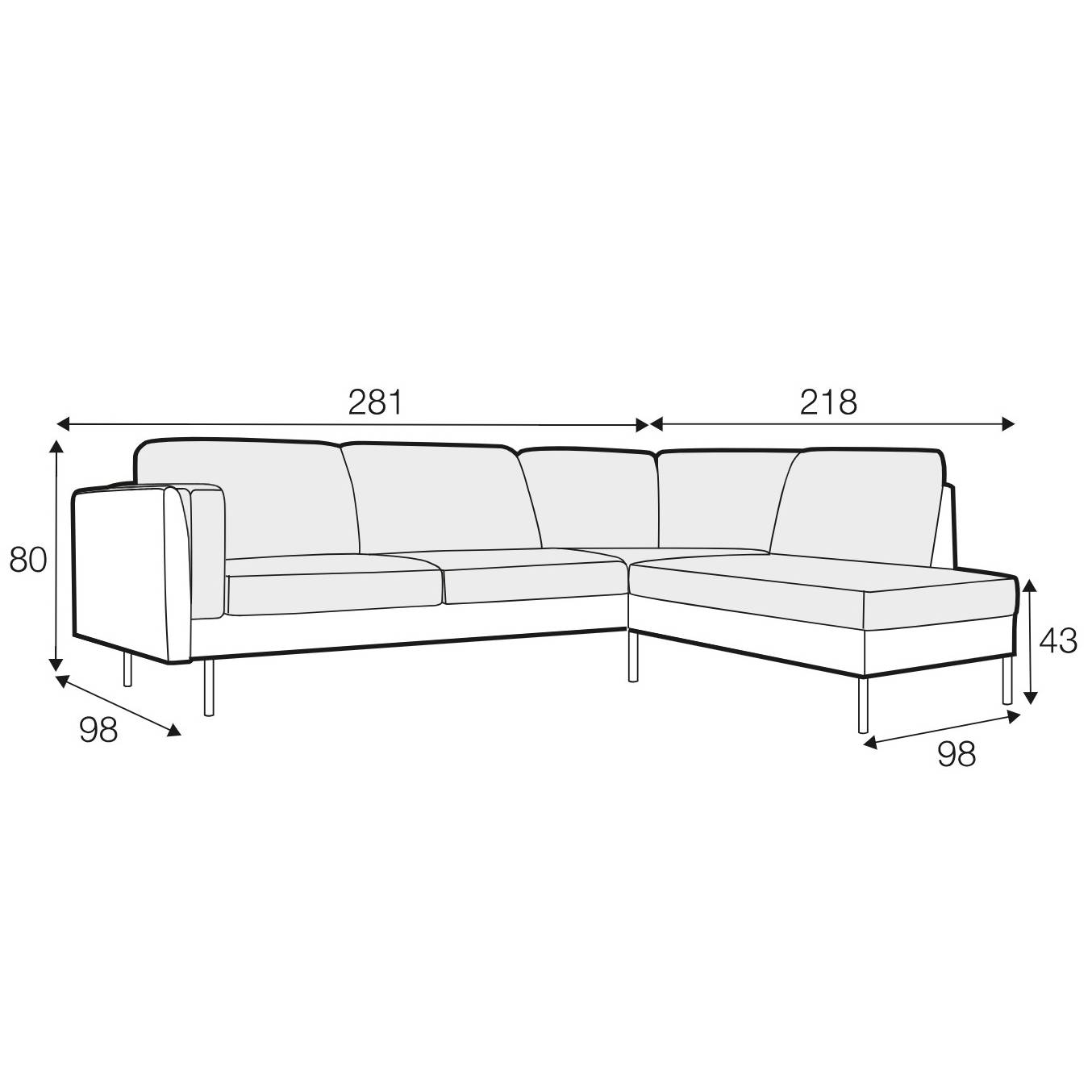 The SITS Sigge Set 1 Corner Sofa features a clean, contemporary design with deep seat cushions and softly padded arms for comfortable everyday use. Upholstered in your choice of fabric, it includes loose seat and back cushions for support and ease of maintenance.